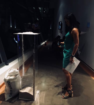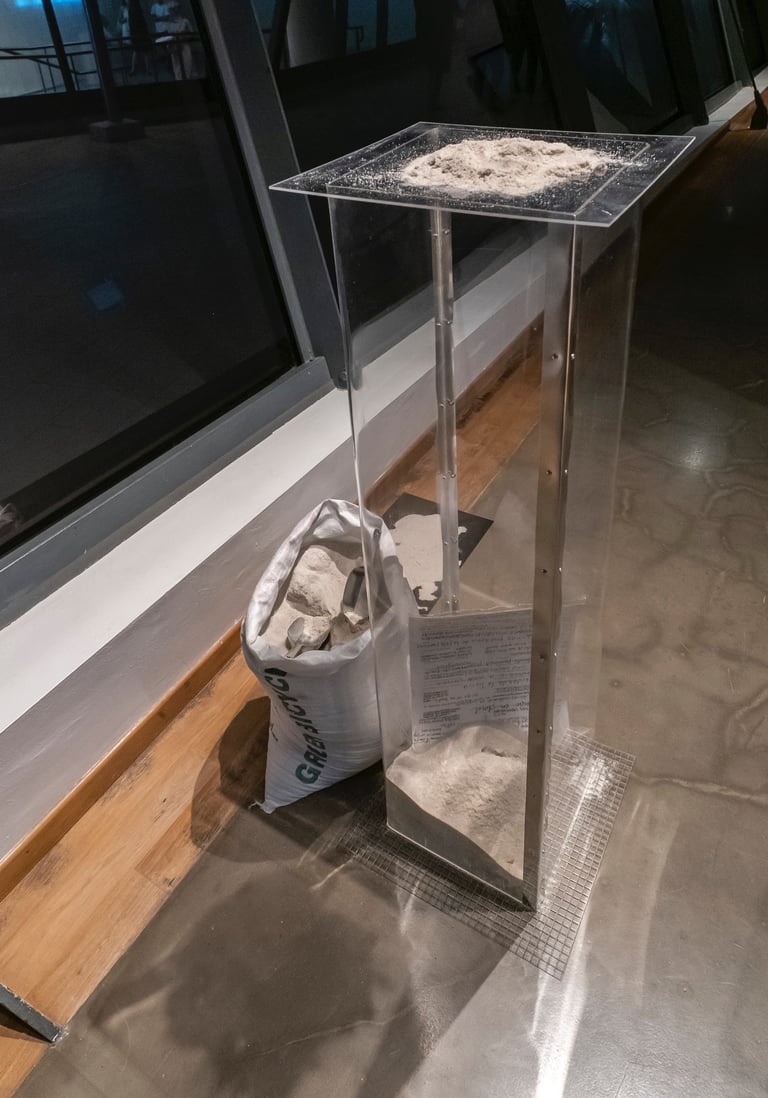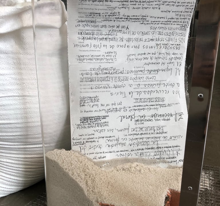 In 2019, I was Invited by ICA-LASALLE Singapore to explore the theme of 'Erase'. The project included research on land and memory which brought me to create 'I tell you I can't', a text installation that consisted of an acrylic rectangular box that holds inside a paper with a poem in Indian Ink, the text includes a series of extracts from Singapore based poets and writers, together with a poem written by me. During the exhibition, visitors were able to poor sand collected from the city, into the box, and over the text work causing the piece to move in reaction, fighting erasure. The project holds the relation between land, forced migration, and displacement.